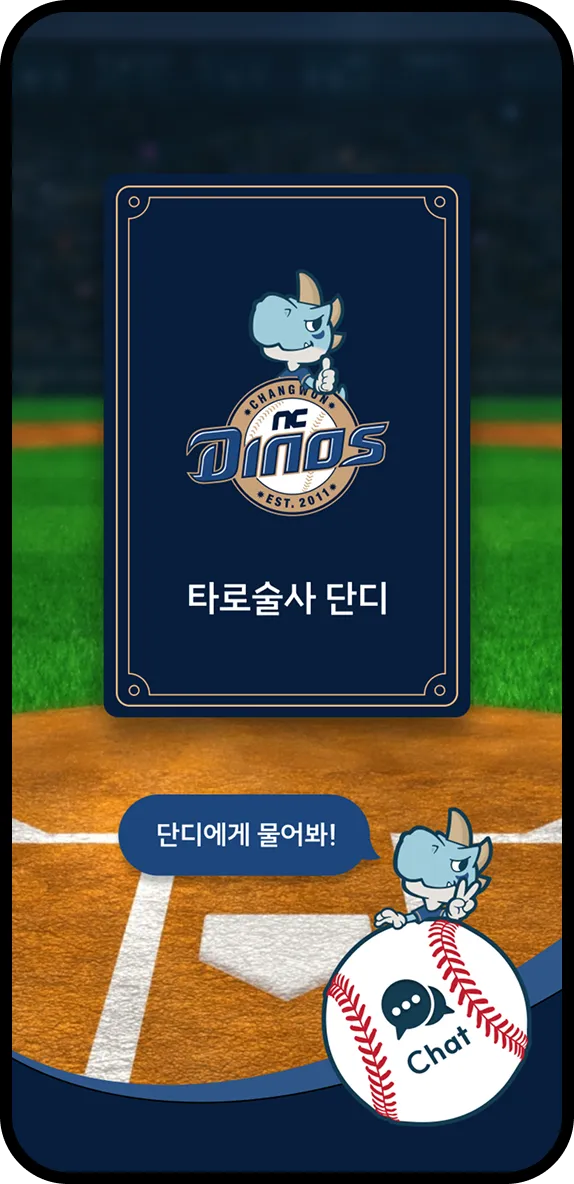 Tag your NC Dinos keyring — get a tarot reading from Dandi or check today’s fortune with Sseri. Chat with each character to get real-time game updates, results, and key highlights from the team.