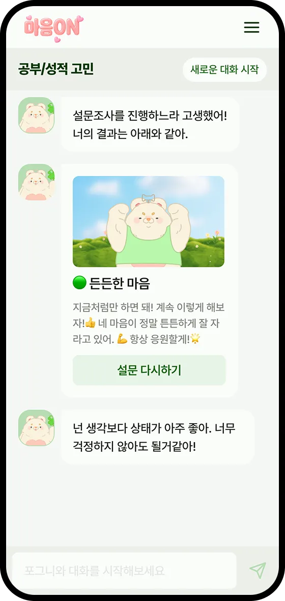 포그니 AI 챗봇과 함께 마음을 내려놓고, 일상 속 작은 힐링과 평온을 경험해보세요.