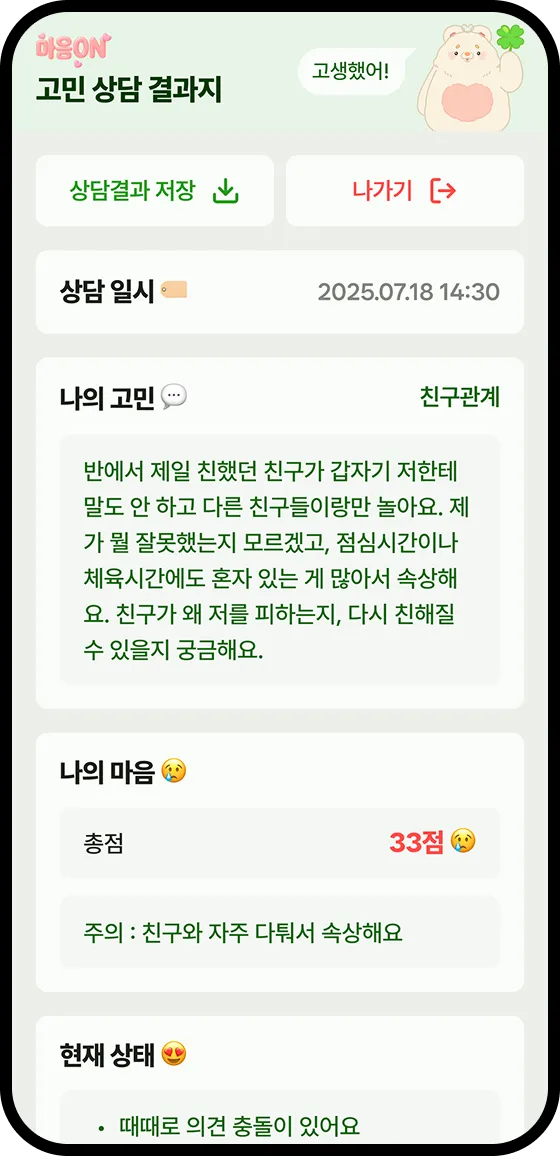 포그니 마음ON 키링을 태그하면 고민 상담을 통해 언제든 편안하게 대화하며 위로를 받을 수 있어요.