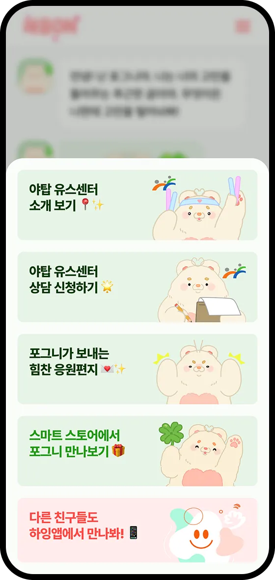포그니 마음ON 키링을 태그하면 고민 상담을 통해 언제든 편안하게 대화하며 위로를 받을 수 있어요.
